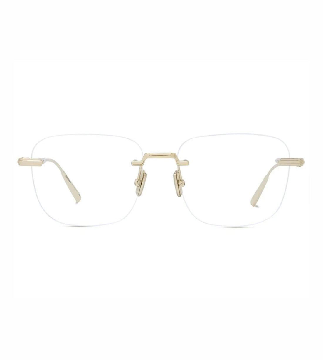 This frame features a gold metal and gold metal frame with gold metal temples in...