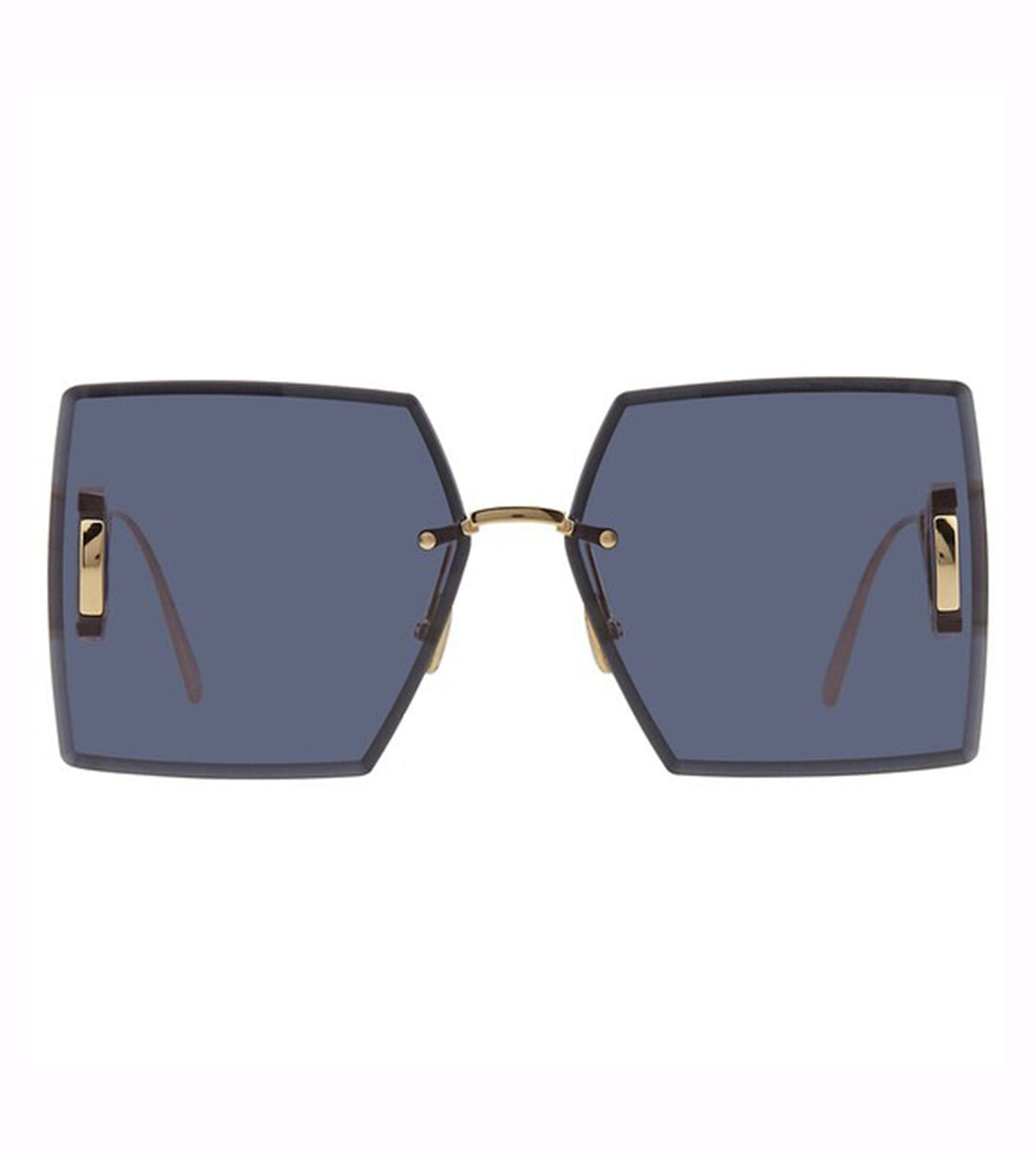 This sunglasses come in a gold metal and gold metal frame with blue lenses, a...