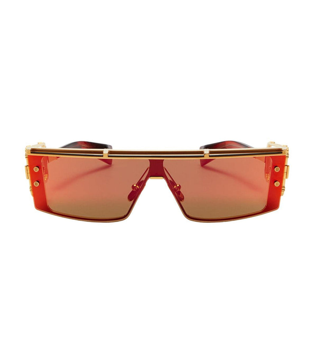 These Balmain sunglasses come in a gold & red titanium and gold & red titanium...