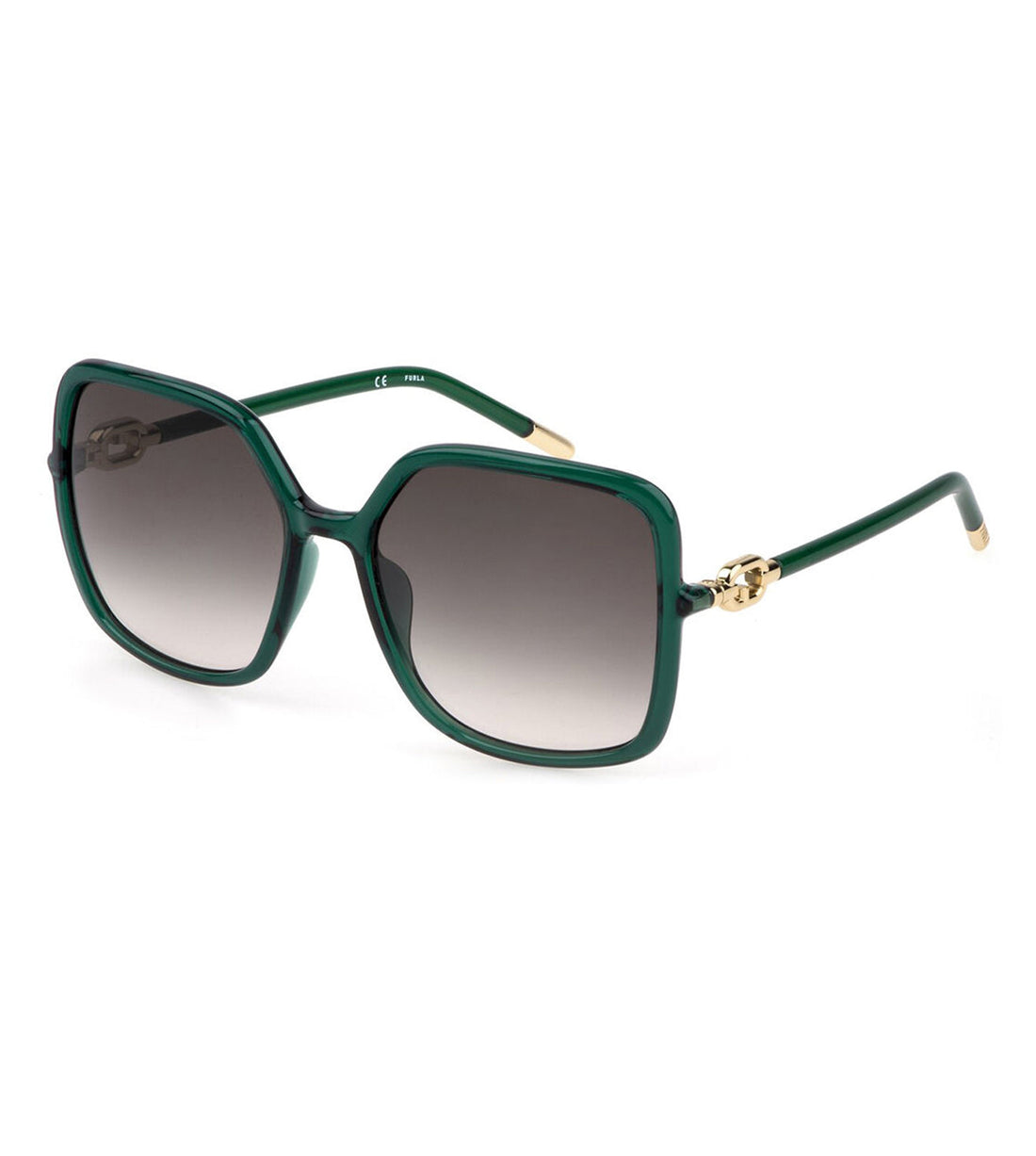 These Furla sunglasses come in a transparent green plastic and transparent green plastic frame with...