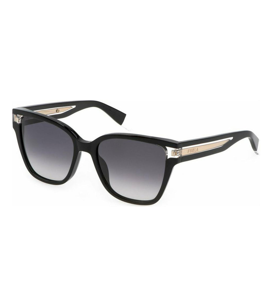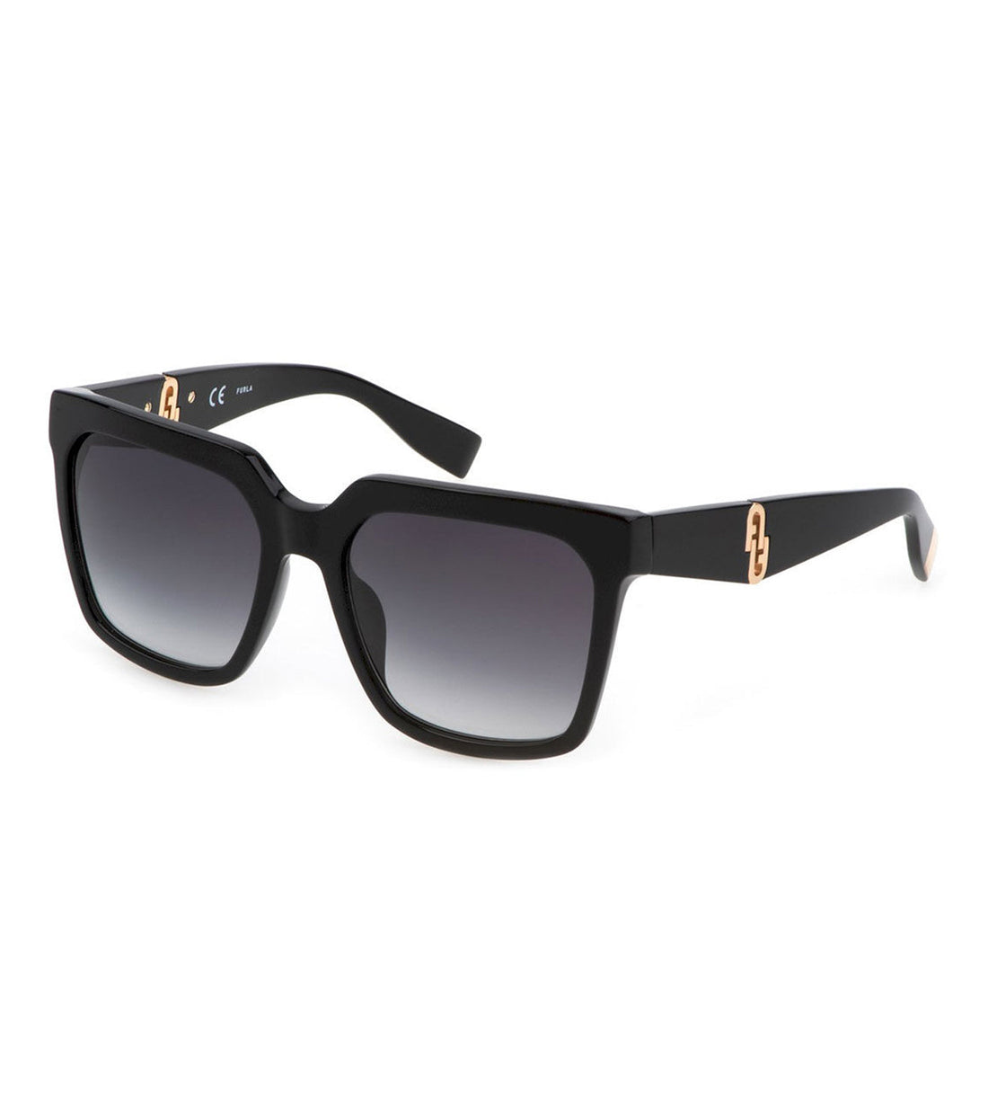 These Furla sunglasses come in a shiny black plastic and shiny black plastic frame with...