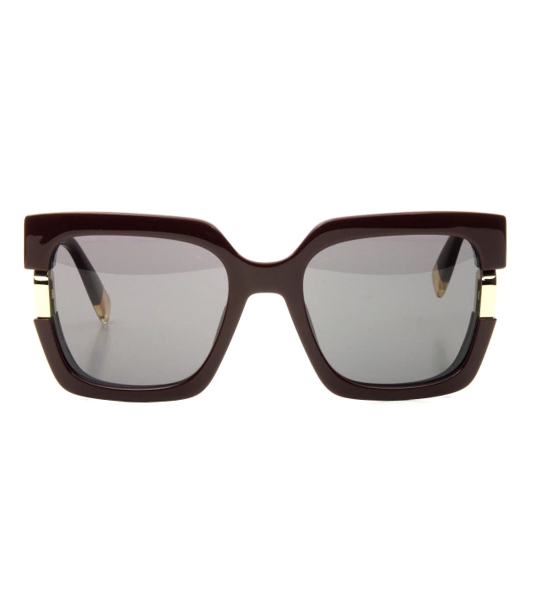 These Furla sunglasses come in a burgundy plastic and burgundy plastic frame with grey lenses,...