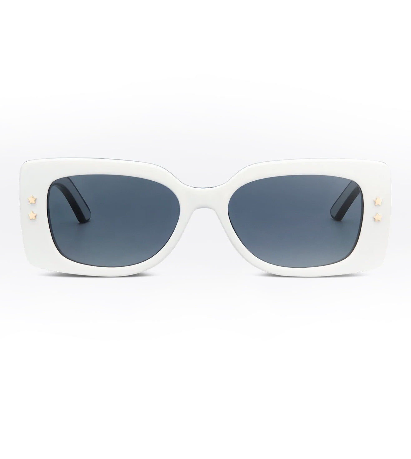 The DiorPacific S1U sunglasses are a modern and bold rectangular design. The acetate frame presents a tri-layer effect in white and blue adorned with gold-finish star details on the front, while the temples feature the Christian Dior signature. Completed by blue lenses, the new essential style will lend a unique touch to any look. |