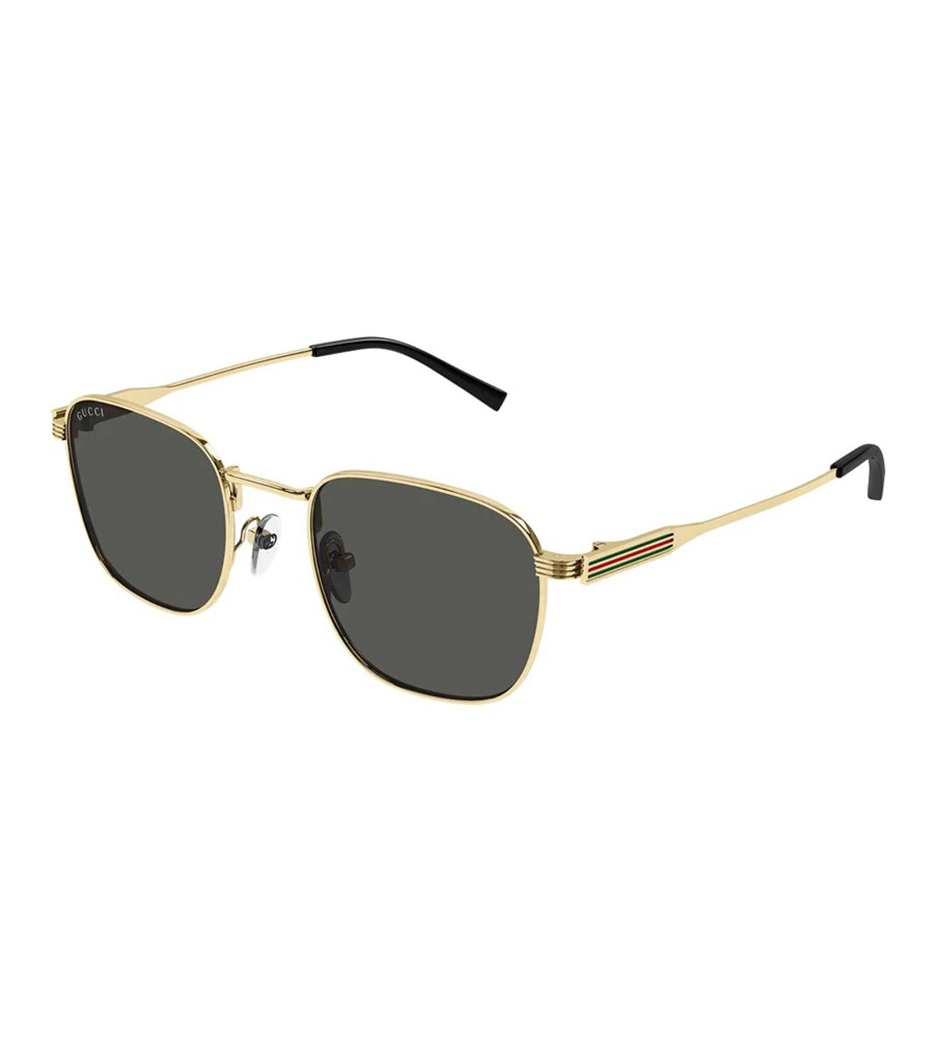 Founded in 1921, Gucci offers eclectic and contemporary creations that represent the pinnacle of Italian craftsmanship that are unsurpassed in quality, attention to detail, and imaginative design. Gucci iconic signatures are merged to create a unique construction featuring a subtle fork temple and the Horsebit sign. Oversized square metal shape with metal temples. Temples embellished by the Fork and Horsebit detail paired with a discreet Gucci Lettering Logo engraved on the temples. The style is available in a classic colour grey lenses. Conservative tones are used for the temple tips. |