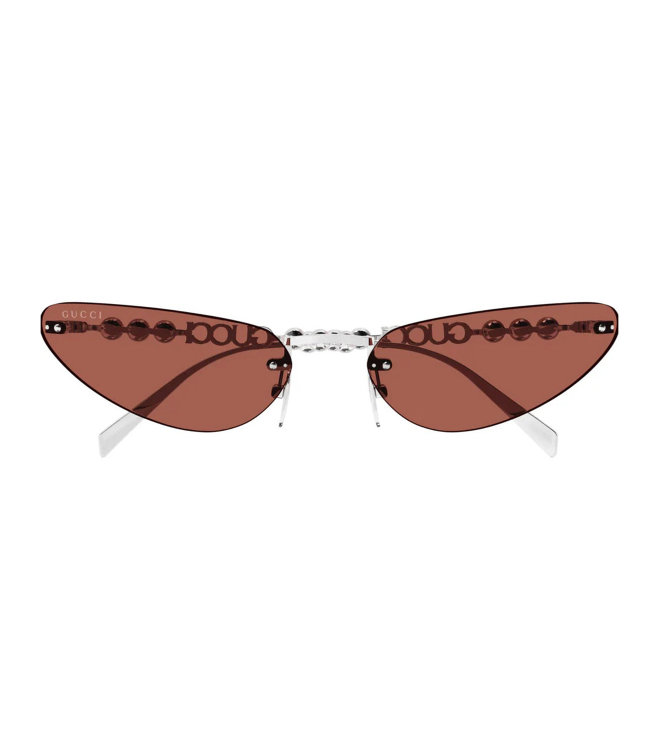 Founded in 1921, Gucci offers eclectic and contemporary creations that represent the pinnacle of Italian craftsmanship that are unsurpassed in quality, attention to detail, and imaginative design. Gucci iconic signatures are merged to create a unique construction featuring a subtle fork temple and the Horsebit sign. Oversized cat eye metal shape with metal temples. Temples embellished by the Fork and Horsebit detail paired with a discreet Gucci Lettering Logo engraved on the temples. The style is available in a classic colour brown lenses. Conservative tones are used for the temple tips. |