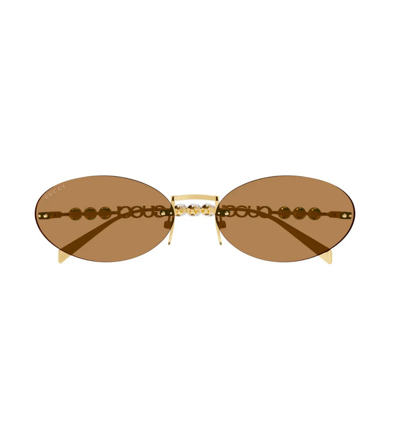 Founded in 1921, Gucci offers eclectic and contemporary creations that represent the pinnacle of Italian craftsmanship that are unsurpassed in quality, attention to detail, and imaginative design. Gucci iconic signatures are merged to create a unique construction featuring a subtle fork temple and the Horsebit sign. Oversized oval metal shape with metal temples. Temples embellished by the Fork and Horsebit detail paired with a discreet Gucci Lettering Logo engraved on the temples. The style is available in a classic colour brown lenses. Conservative tones are used for the temple tips. |