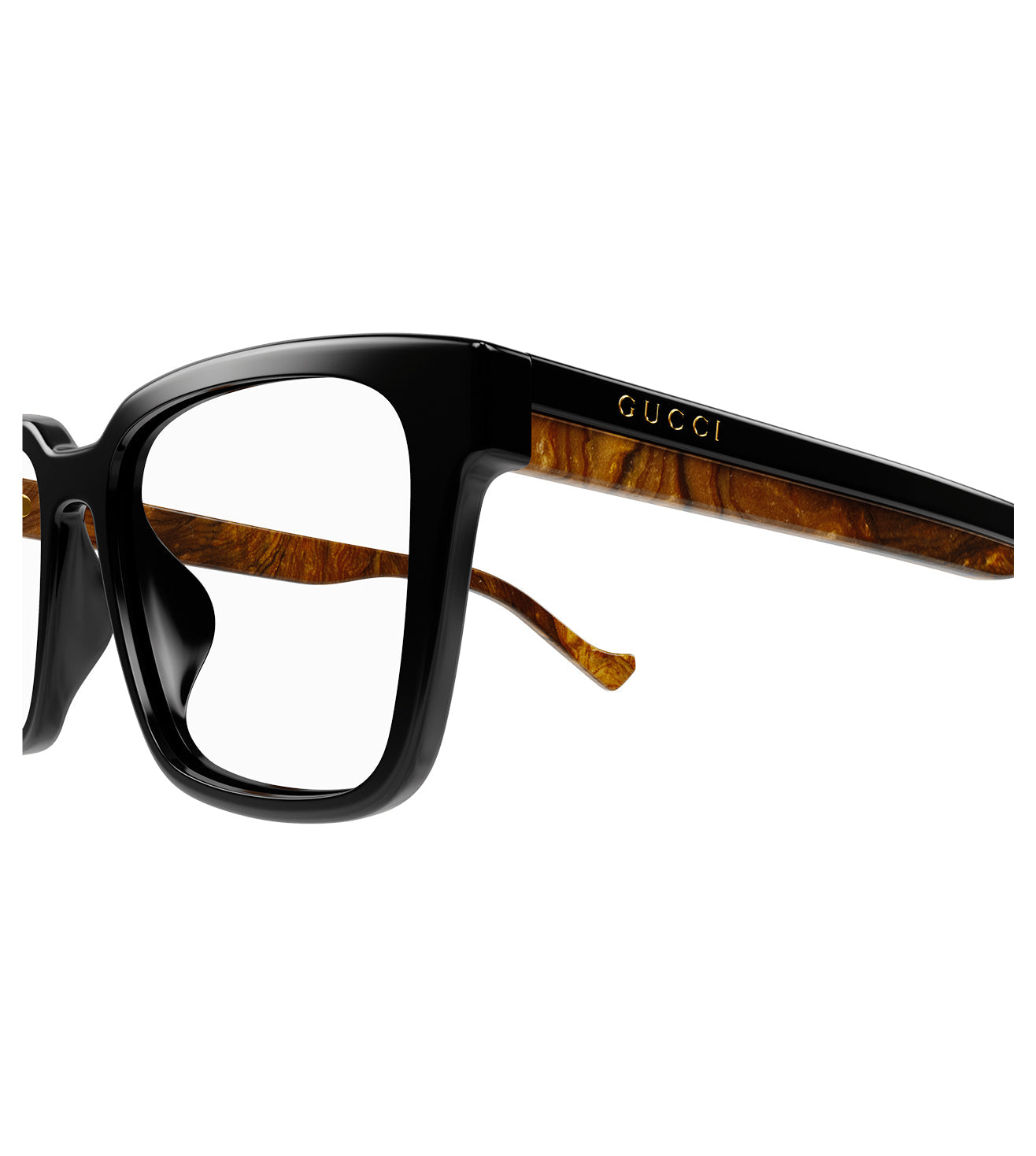 Founded in 1921, Gucci offers eclectic and contemporary creations that represent the pinnacle of Italian craftsmanship that are unsurpassed in quality, attention to detail, and imaginative design. Rectangular shape. Milled temples recreating the web. Gucci Lettering logo on temples. Evergreen Gucci look with a sophisticated touch.