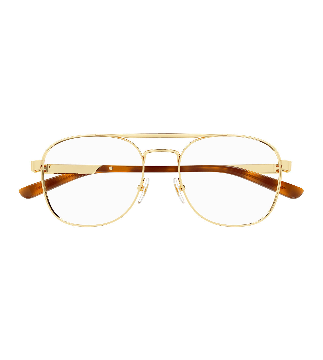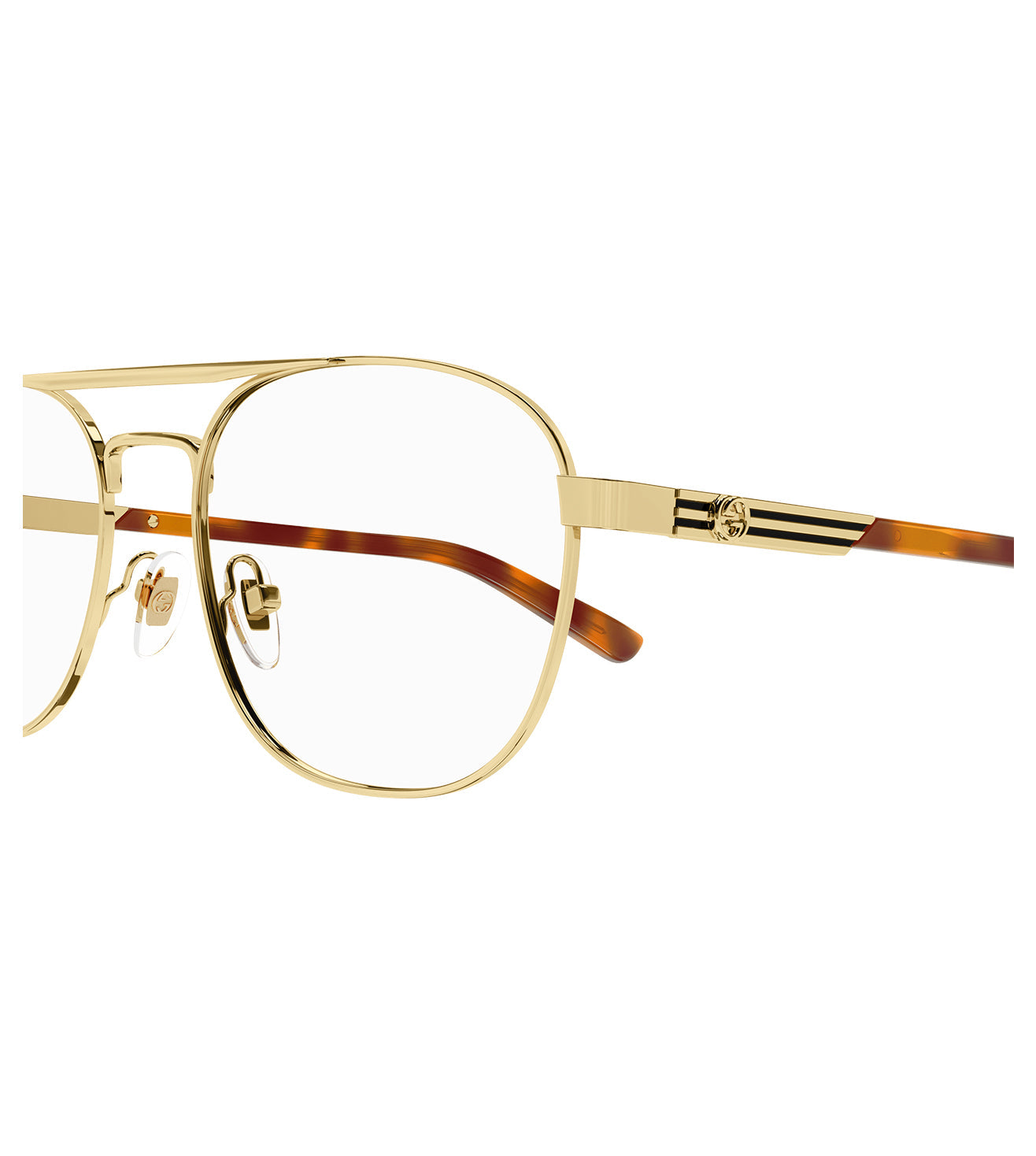 Founded in 1921, Gucci offers eclectic and contemporary creations that represent the pinnacle of Italian craftsmanship that are unsurpassed in quality, attention to detail, and imaginative design. Vintage inspired pilot shape. GG Interlocking logo on both temples. Enameled stripes recalling the web on both temples. Vintage style with a contemporary fit.