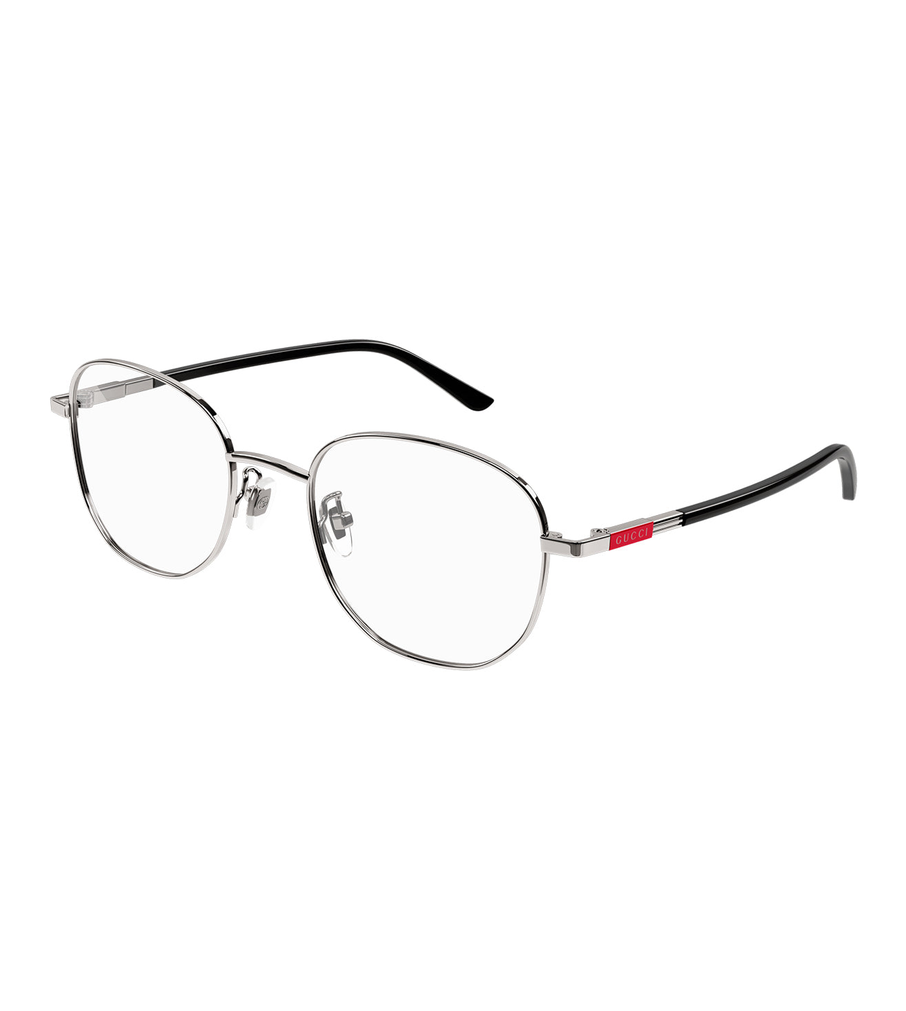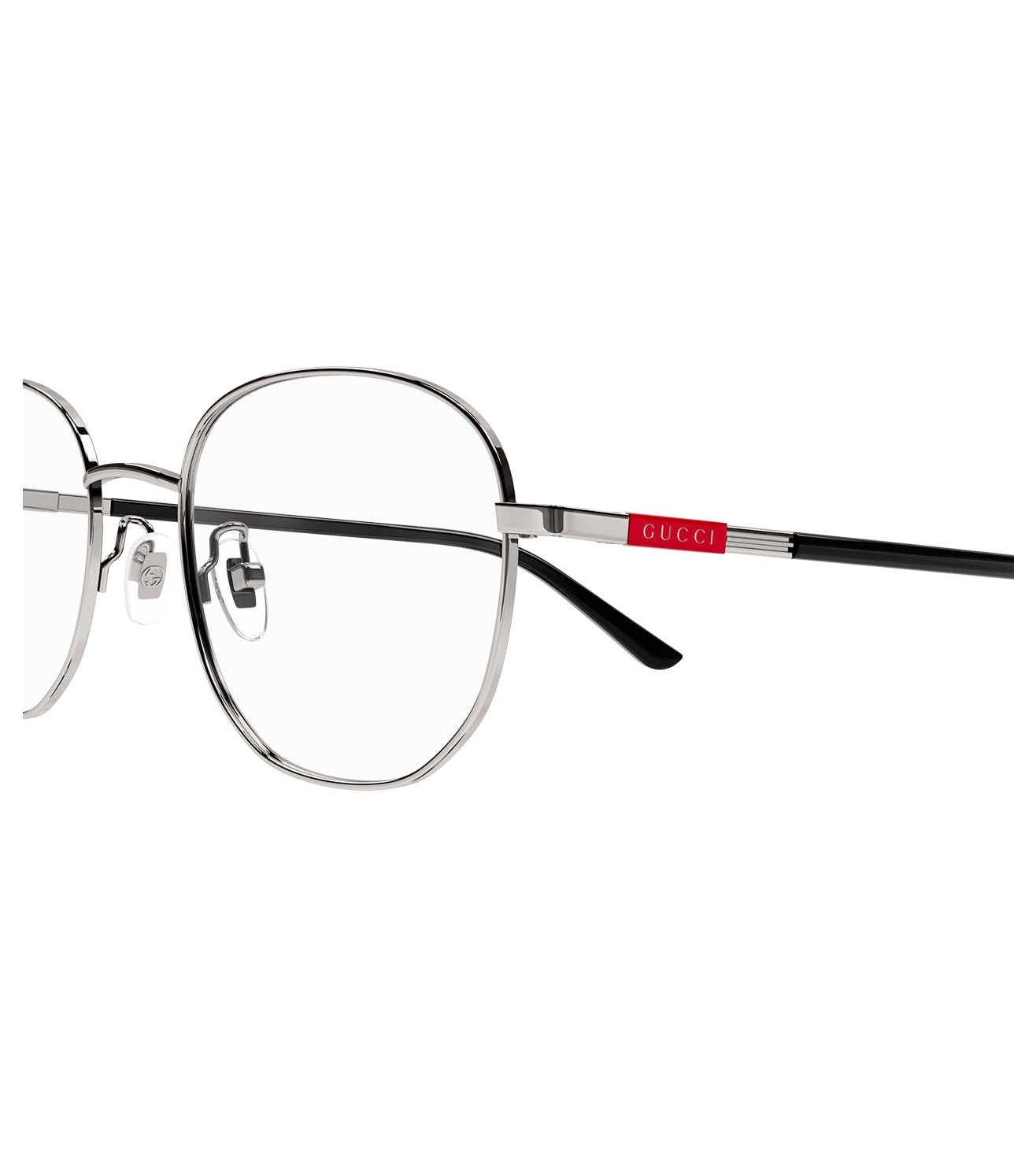 Founded in 1921, Gucci offers eclectic and contemporary creations that represent the pinnacle of Italian craftsmanship that are unsurpassed in quality, attention to detail, and imaginative design. Lightweight soft square shape. Metal gold plaque on both hinges. Teamples featuring enameled detail with Gucci Lettering logo lasered on it. Combi construction with precious details.