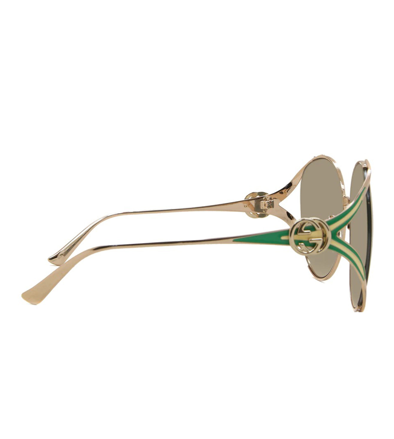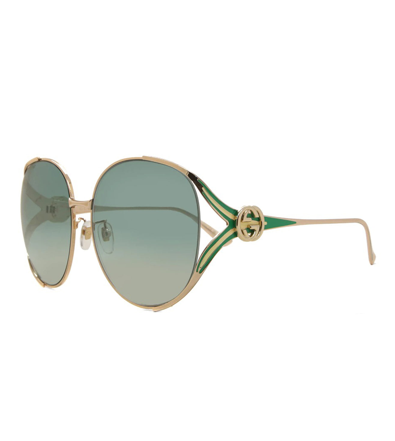 Founded in 1921, Gucci offers eclectic and contemporary creations that represent the pinnacle of Italian craftsmanship that are unsurpassed in quality, attention to detail, and imaginative design. These Gucci  sunglasses come in a gold metal and gold metal frame with gradient green lenses, a perfect colour palette to match any style this summer. Customized with the signature brand details, this eyewear comes in its original branded case with a complementary cleaning cloth.