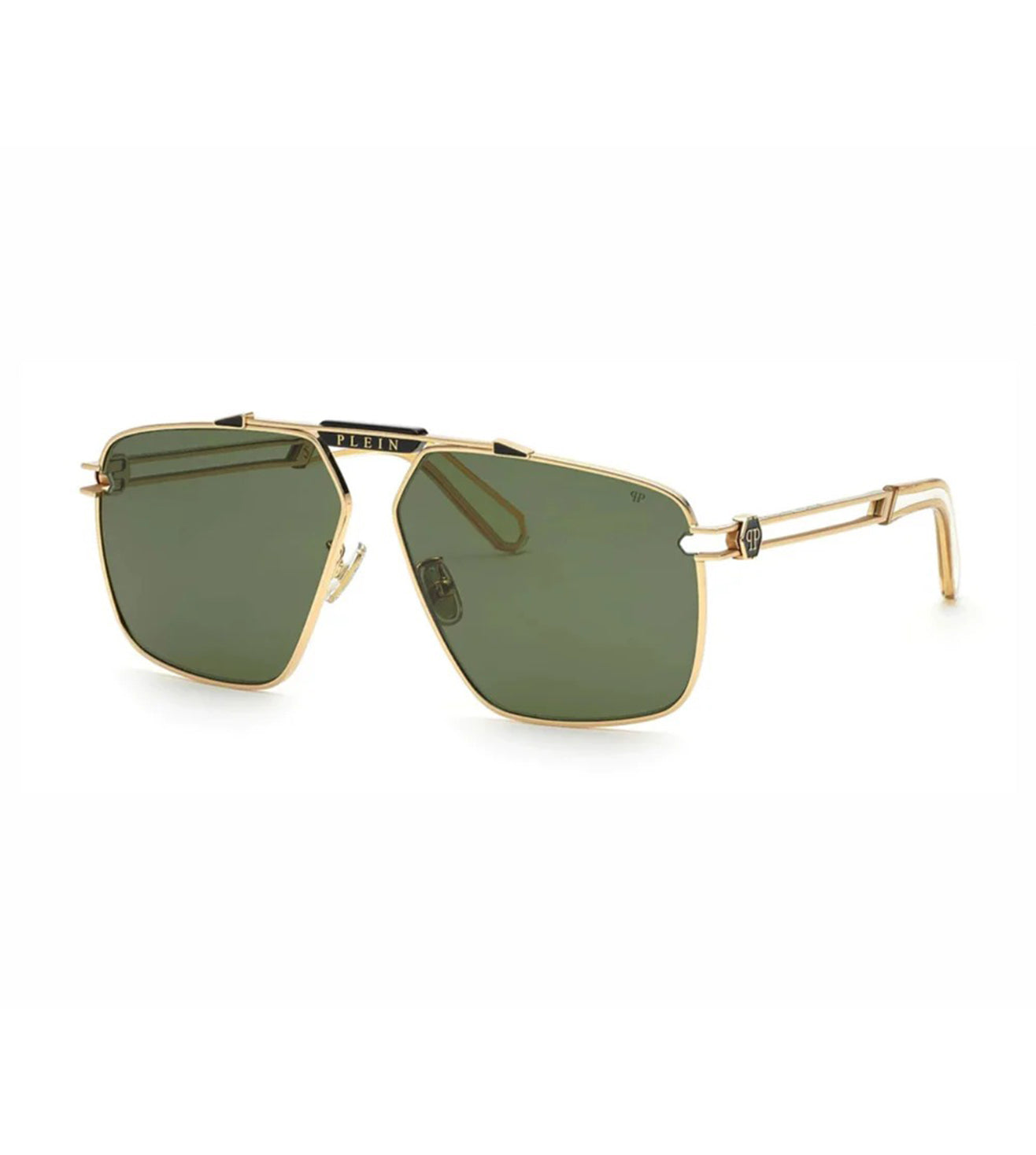 Philipp Plein is a German luxury fashion brand known for its bold and extravagant designs. Philipp Plein's creations often incorporate edgy elements, unique embellishments, and a rock-and-roll aesthetic. This Philipp Plein sunglasses come in gold metal frames with green lenses, a perfect color palette to match any style this summer. Customized with the signature brand details, this eyewear comes in its original branded case with a complementary cleaning cloth. |