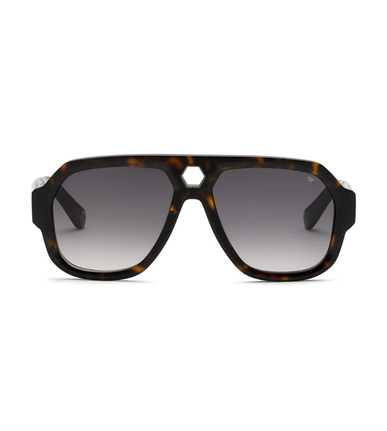 Philipp Plein is a German luxury fashion brand known for its bold and extravagant designs. Philipp Plein's creations often incorporate edgy elements, unique embellishments, and a rock-and-roll aesthetic. This Philipp Plein sunglasses come in dark tortoise acetate frame with grey gradient lenses, a perfect color palette to match any style this summer. Customized with the signature brand details, this eyewear comes in its original branded case with a complementary cleaning cloth. |